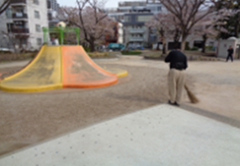 ①公園清掃業務:鮫洲運動公園清掃 月~金曜日